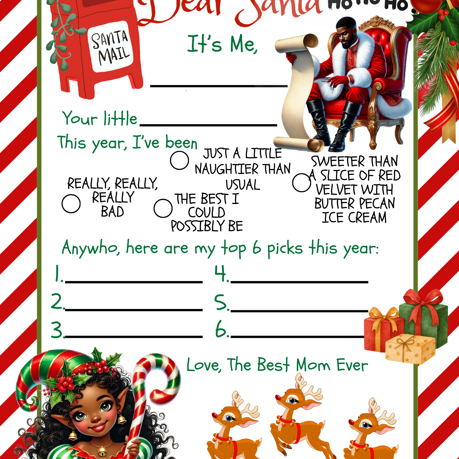 Letter to 3 versions of Santa (From Mom): Santa Bae, Santa Daddy, or Santa Poppa with Matching Envelopes- printable (PDF)
